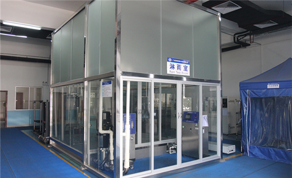 银河集团9873com实验室新建有HY-1036型淋雨室,可做喷头式淋水试验,为您的保护罩或保护壳防止渗雨的有效性、设备在淋雨暴露期间或之后满足其性能要求的能力、设备由于淋雨造成的物理损坏和雨水排除系统是否有效等需求提供检测服务。