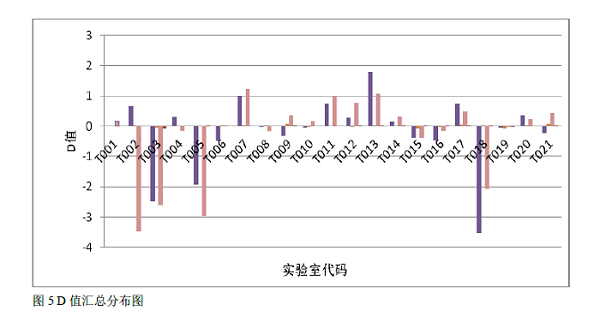 为了清晰表示各实验室参加能力验证计划的结果,按照检测频点及检测参数,将 D 值作柱状图,每一个柱条标有该实验室的代码,我司是T020-016,能力验证结果与指定结果非常接近,证明我司5G NR 终端的测量结果在检测机构中处于领先水平。