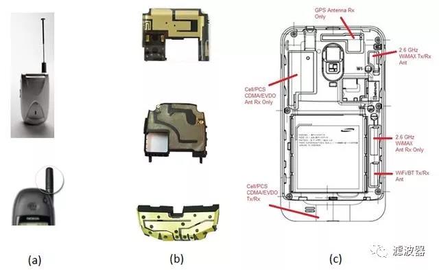 现在在大多数移动通信设备中,天线都被嵌入到一个很小的空间里。在一个相对久远的移动电话,你可能已经看到了天线显示在左侧的图片(鞭天线)。在大多数的移动设备,你看到这些天,天线是嵌入的情况下,或正确的印刷电路板如下所示。随着移动设备(例如智能手机)在一个设备中获得越来越多的技术(例如,带有各种频段 / 无线接入技术的蜂窝技术,蓝牙,无线网络等) ,设计多个天线并将其放入一个小空间变得越来越困难。