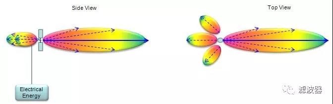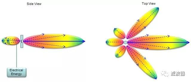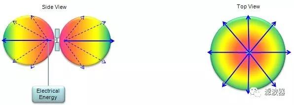 了解 / 评估天线性能的第一步是检查天线的辐射模型。在大多数情况下,电能都是通过预先设定好的路径流动的,这种路径通常建立在铜线或印刷电路板上的铜痕迹上,但是一旦电能转化为电磁波,它几乎就会向四面八方传播。根据我们设计天线的思路,电磁波在空气中传播的方向是不同的。天线在某些方向上传输很强的能量,在某些方向上传输少量的能量,在某些方向上传输中等范围的能量等,这种能量传输方式被称为“辐射方向图”。(更实际的辐射型态例子,请参阅 http://rcexplorer.se/educational/gain/gain.html )以下只是一些可能的辐射型态例子。事实上,你可以想到几乎无限多种不同的模式。天线设计的目标是使它在从电能到电磁能的转换过程中,以我想要的方式传输能量,而不会有任何能量损失。